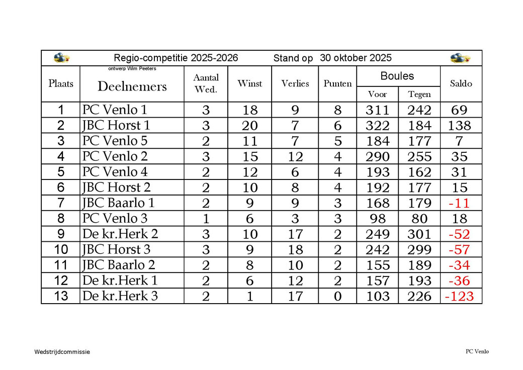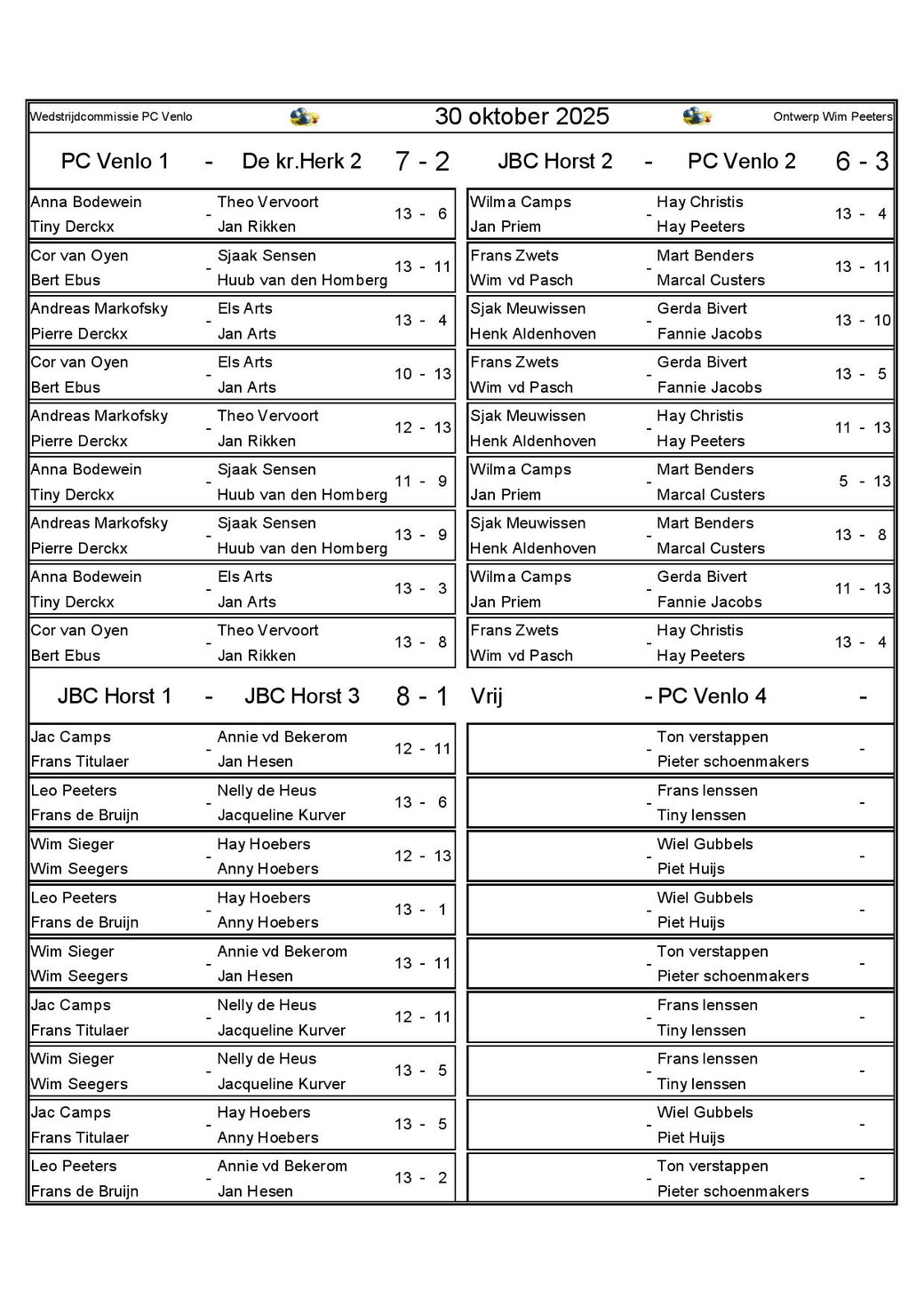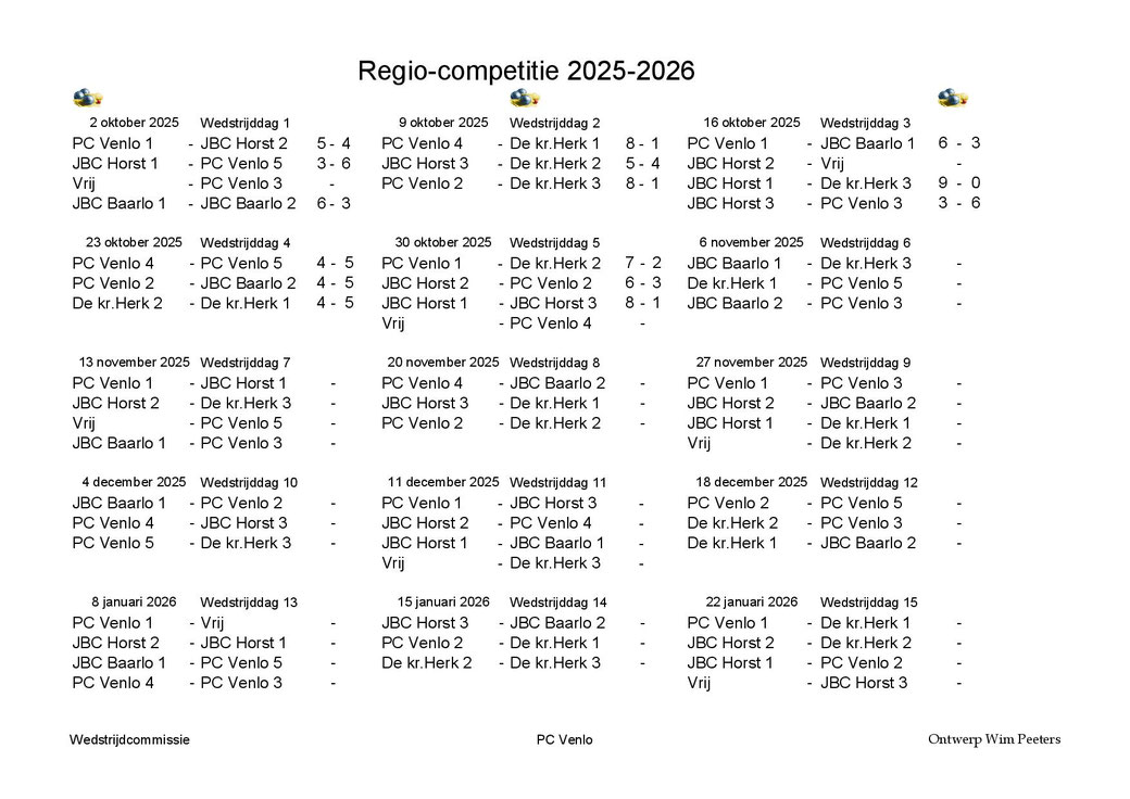 30 minuten na opening beginnen deĀ wedstrijden.