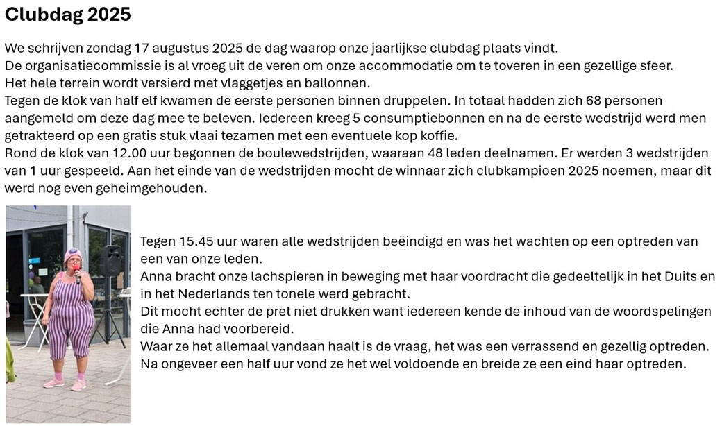 Na het wegvallen van de verwendag hebben enkele leden het idee geopperd om een clubdag te organiseren, en hier heeft het bestuur goedkeuring aan verleend.