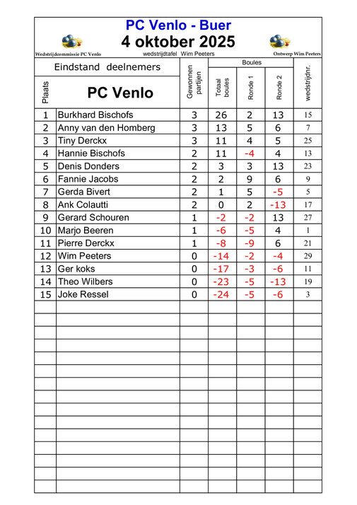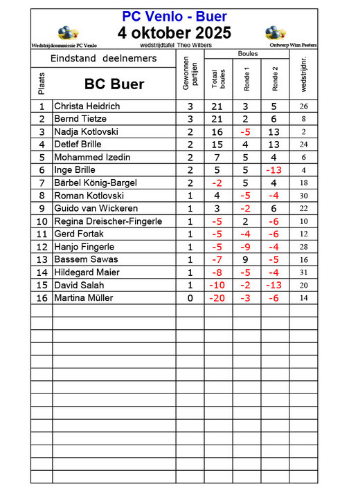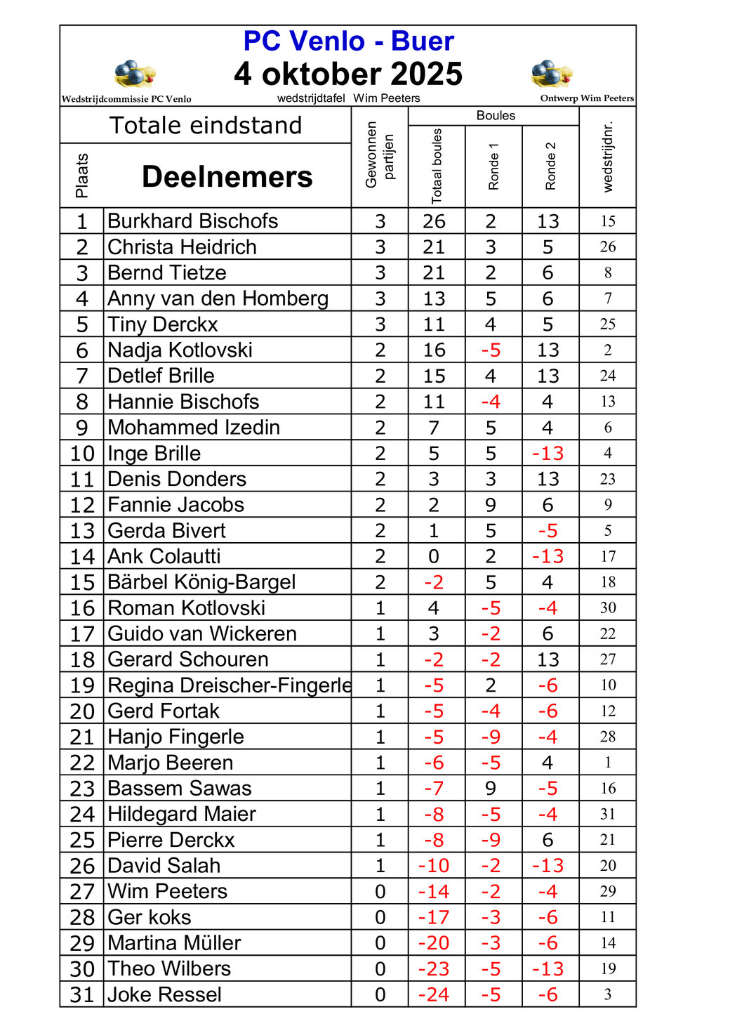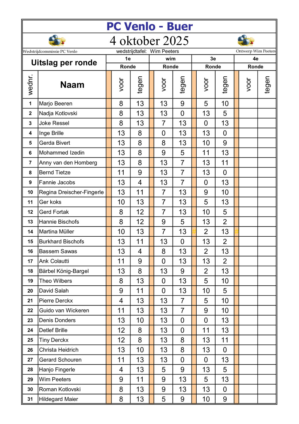 Er werden 3 rondes gespeeld waarna werd bepaald welke 3 beste spelers van BC Buer en PC Venlo het tegen elkaar in finale mochten gaan opnemen.