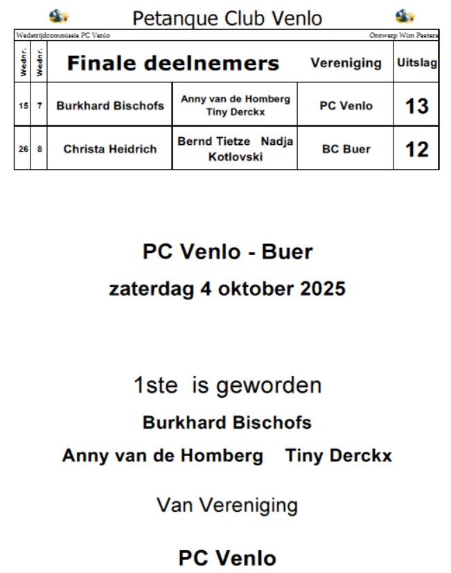 Zoals in afgelopen jaren werd er een finale gespeeld tussen de 3 beste spelers van Venlo en de 3 beste van BC Buer.